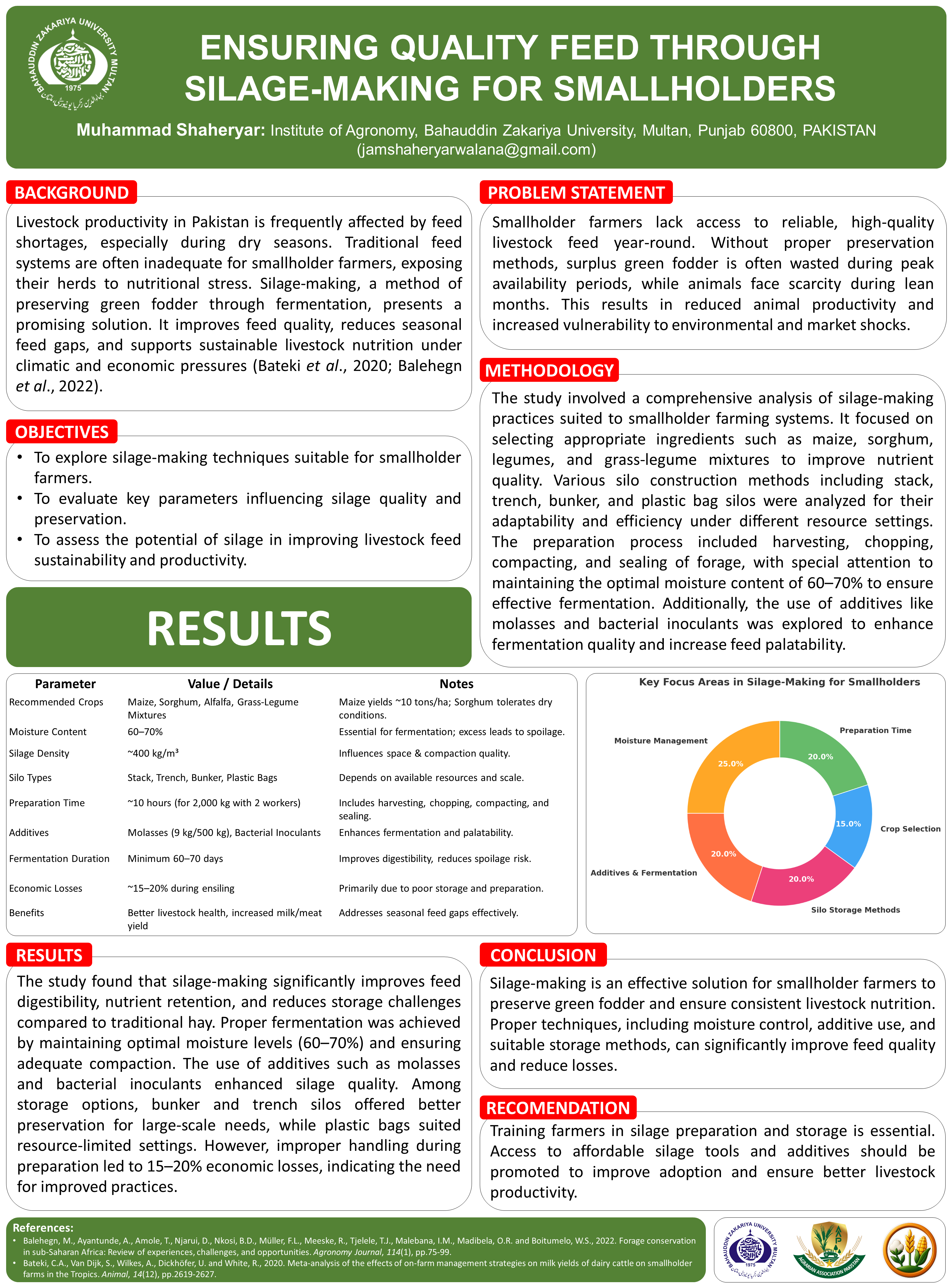 Muhammad | Shaheryar | Institute of Agronomy, Bahauddin Zakariya University, Multan | Ensuring Quality Feed Through Silage-Making for Smallholders | Poster |
